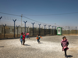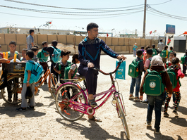 JORDAN. 2016. Outside the school at the Za'atari camp.