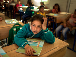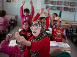 JORDAN. 2016. Children at a local school in the Za'atari camp...