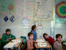 JORDAN. 2016. A school at the Za'atari camp, where several of...