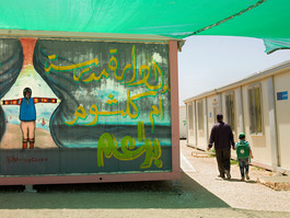 JORDAN. 2016. A graffiti on a wall at the Azraq Camp.
