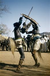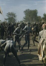 The Nuba tribe from the Korong Jebels (hills) in the Kordofan area of Southern Sudan are herdsmen with cattle that graze in the lower valleys. In 1949, Sudan was ruled by a Condominium government of British and Egyptians. Though the Nuba follow their own culture and rituals, the region is ruled primarily by nomadic Arabs.