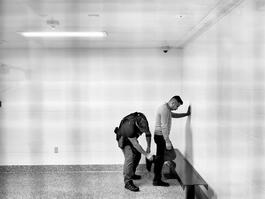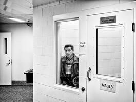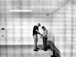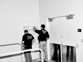 USA. Portland, Oregon. 2018. Apprehended immigrant at an Immigration...