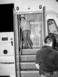 USA. Portland, Oregon. 2018. Apprehended immigrants at an Immigration...