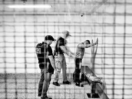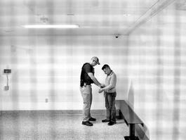 USA. Portland, Oregon. 2018. An apprehended immigrant at an...