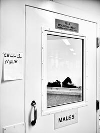 USA. Portland, Oregon. 2018. Signs in a holding cell at an Immigration...