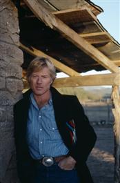 USA. New Mexico. 1988. Robert REDFORD on horseback with an extra...