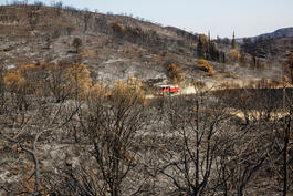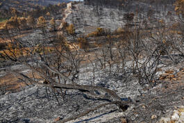 On Tuesday, August 5, massive fires broke out in southern France, reaching 16,000 hectares — the largest fires in half a century. The fires destroyed 36 houses and burned around 20 agricultural buildings. Although the fire has now been extinguished, authorities are asking residents and tourists to remain vigilant in the area amid a red alert due to the heat wave. Patrick Zackman photographed the destruction caused by the fire, as well as firefighters still working a week after the blaze began