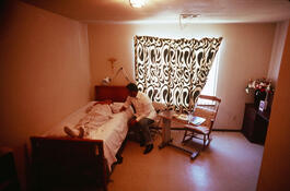 USA. California. 1988. UFW President Cesar Chavez, his mother...
