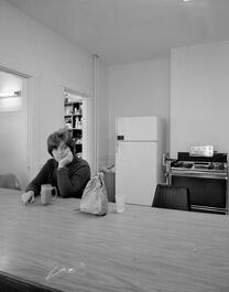 In 1970, while a student at the Harvard Graduate School of Education, Susan Meiselas was living in a boarding house at 44 Irving Street in Cambridge, Massachusetts. What began as a class project evolved into a deeply empathetic portrait of community domestic life. Meiselas photographed her neighbors in the building—many of them strangers—inside their rooms, initiating a collaborative exchange by sharing contact sheets and inviting written responses. These reflections appear alongside the photographs, offering insight into how her subjects saw themselves.