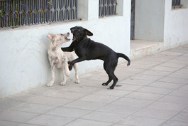 CHILE. Valparaiso. 2017. Barrio Artilleria. Playing street dogs....