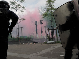 Bruno Barbey, Enri Canaj, Lorenzo Meloni, and Jerome Sessini photographed the May Day demonstrations in Paris.