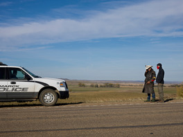 USA. Standing Rock, ND. 2016. Ta'sina Sapawin confronted by police...