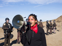 USA. Standing Rock, ND. 2016. Native Americans demonstrating...