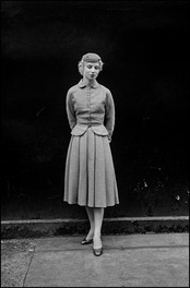 FRANCE. Paris. 1954. Catherine Brown models a Dior coat.